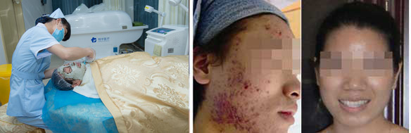 通过重度痘痘治疗,解决毛囊壁破裂导致痤疮正常组织突变问题,抚平痤疮皮损。