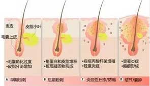 通过中度痘痘治疗,解决细菌感染和毛囊壁过度角化炎症反应等问题,阻止细菌繁殖和炎症进一步发展。